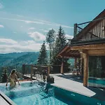 Die 3-Zimmer- Villa LUXGUT - Rebecca Zmollach verfügt über eine Terrasse mit Aussicht auf die Berge sowie einen Swimmingpool.